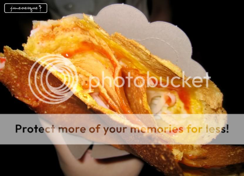 there was ham, crabmeat, sausage, mayo, chilli sauce etc inside.