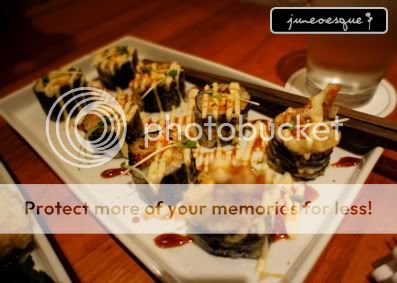 recommended by the server, soft shell cream and cream cheese sushi (300 baht)...