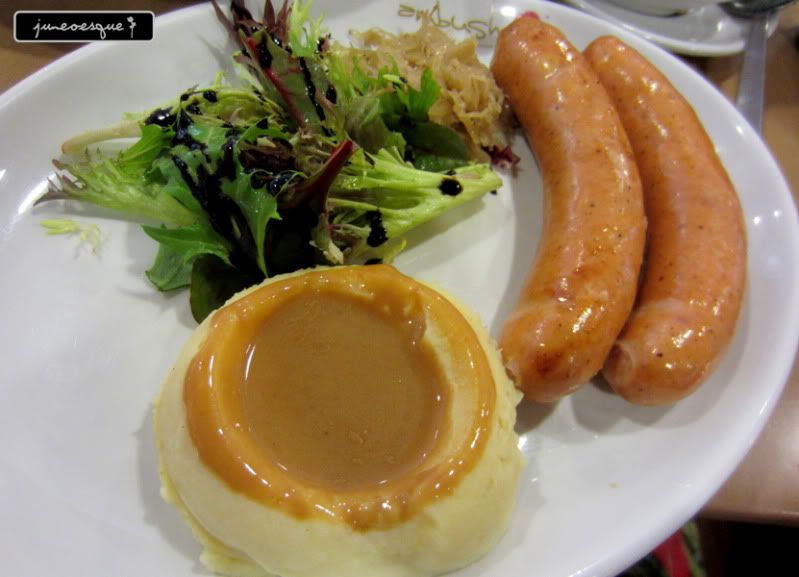their sausage was not bad. mashed potato could be better. mashed potato can be changed to rosti with a top up of $2 actually.