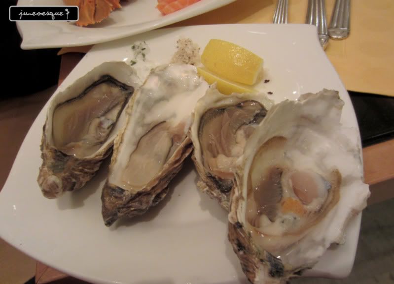 and their oysters were from 4 different countries! there was france, canada and hmm cannot remember already. but they were so yummy! freshly opened in front of you and taste really fresh! even clammy who doesn't really take oysters like it...
