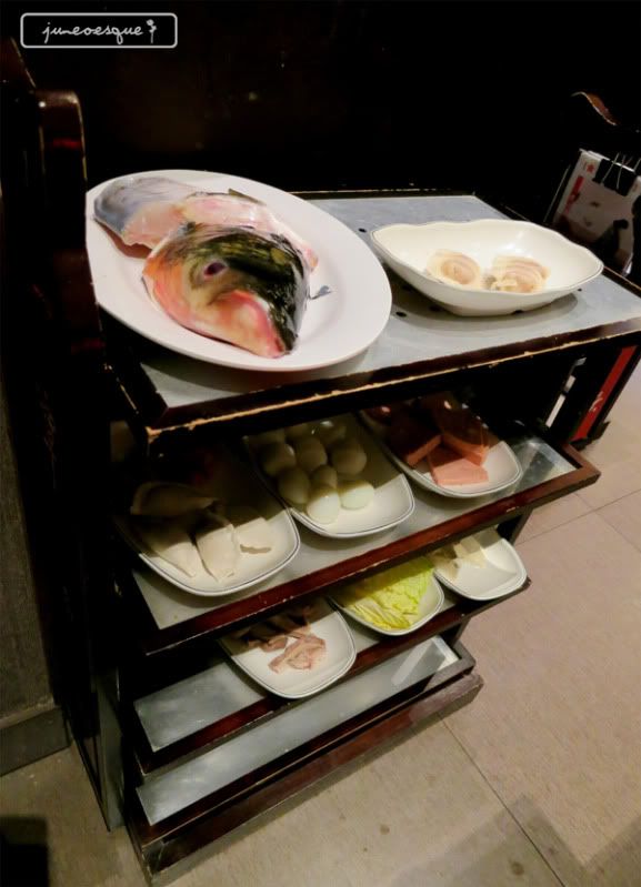 chose the soup base of clear fish soup and preserved veg with fish head soup...